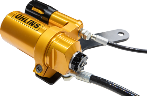 The Ohlins HD 517 STX Pro shock offers advanced suspension performance designed for serious mountain biking enthusiasts. Featuring a single-tube design with an internal reservoir, this shock ensures consistent damping and reliability during demanding rides. Its high-pressure nitrogen gas-charged system provides a smooth, controlled ride, while the 46 mm piston diameter delivers efficient shock absorption across varied terrains. The fully adjustable rebound damping allows riders to fine-tune their ride for optimal control and comfort, whether tackling technical descents or smooth climbs. The hose-mounted hydraulic preload adjuster enables easy saddle height and preload adjustments without disassembly, making it convenient for on-the-fly tuning. Multiple spring rates are available to match rider weight and riding style, ensuring tailored suspension performance. Built with hard-anodized, precision CNC-machined components, the HD 517 combines durability with lightweight construction. Its low-friction shaft and sealhead design reduce stiction, providing a responsive feel and longer service life. Fully serviceable and repairable, this shock is designed to maintain peak performance over time, offering a long-lasting upgrade for mountain bike enthusiasts seeking top-tier ride quality.