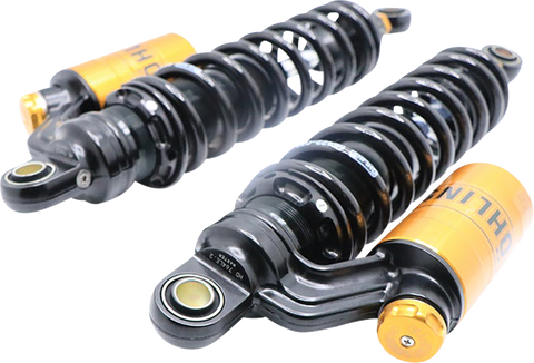 Experience superior ride quality with the OHLINS HD 764LE twin shocks, designed for optimal performance and durability. These 13-inch shocks feature adjustable rebound and compression damping, allowing precise tuning to match your riding style and terrain. The Monotube design with a piggyback reservoir ensures consistent damping performance under demanding conditions, while the length adjustment of .393 inches provides added flexibility for customizing your suspension setup. Equipped with high-pressure nitrogen gas charging, these shocks deliver reliable response and stability across various riding scenarios. The 36 mm (1.417 inch) piston diameter enhances damping efficiency, contributing to improved handling and comfort during rides. The adjustable preload, easily set with a billet tool, allows for quick spring tension adjustments to suit different rider weights and preferences. Multiple spring rates are available, enabling riders to select the ideal setup for their specific needs. The fully CNC-machined components are hard anodized for increased wear resistance and longevity, ensuring these shocks withstand rigorous use. The low-friction shaft and seal head design reduce stiction and enhance smooth operation, while the fully serviceable construction makes maintenance straightforward and cost-effective. Whether you're seeking improved performance for off-road adventures or enhanced rideability for daily commuting, these shocks provide top-tier comfort, stability, and responsiveness to elevate your motorcycle experience.