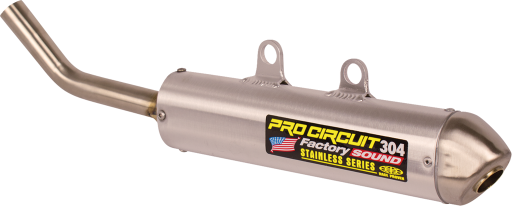 The double-walled mounting brackets provide secure attachment, while the stainless steel end-cap enhances durability and resistance to heat and corrosion. Allen head screws facilitate easy repacking, allowing for extended product life and optimal performance without the need for specialized tools. Made in the USA, this silencer combines quality craftsmanship with high-performance features to meet the needs of serious riders. Whether you're racing or enjoying recreational riding, the PRO CIRCUIT 304 Silencer delivers superior noise control, durability, and ease of maintenance for your Beta motorcycle.