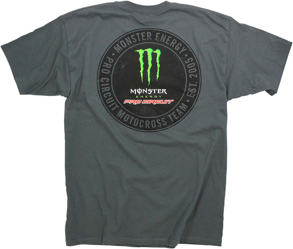 Charcoal Pro Circuit/Monster Energy collaboration T-Shirt, Circular graphic printed on the left chest and on the back, Graphics utilize premier quality inks and state-of-the-art screen printing processes for long-lasting style