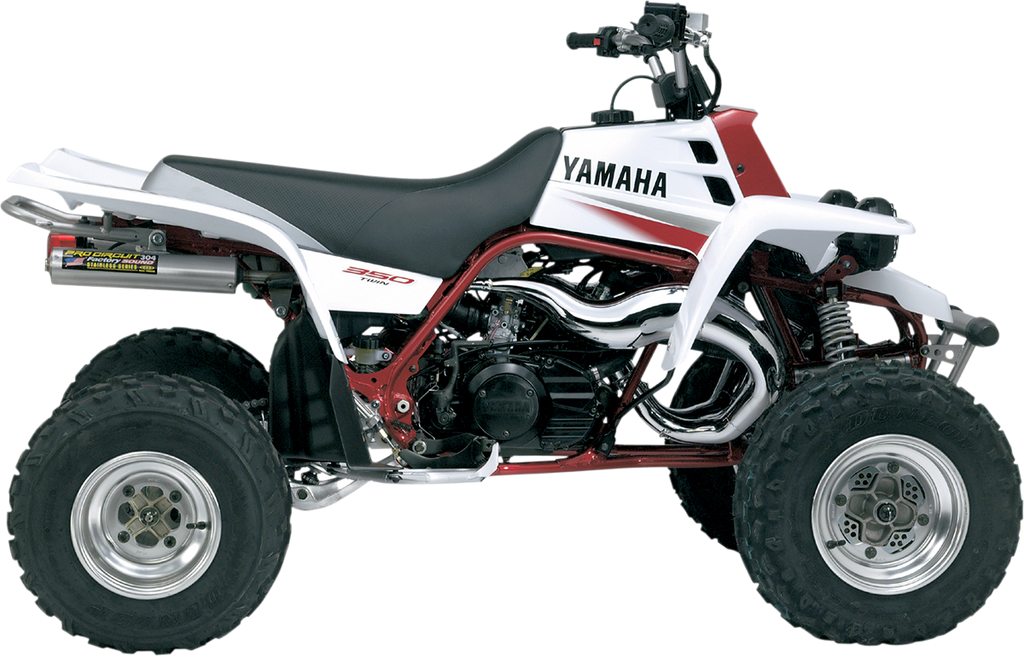 Inspired by the championship winning Works-pipe, the Platinum series pipe utilizes plating on the body to protect it from everyday wear and tear, Unique nickel bath technology gives the surface added abrasion resistance and enhances the aesthetic look, Stamped AKDQ high-quality carbon steel construction for exceptional fit and performance, Hand-welded and pounded seams, Embossed name plate and CNC-machined exhaust flange, Reinforced mounting brackets and stinger for increased strength and durability