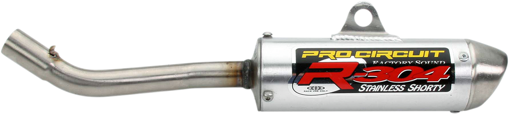 Full-race two-stroke silencer, The compact design of the short aluminum canister offers optimum performance gains and is recommended for closed-course racing only, Hex head screws are used to secure the inlet cap and can be removed easily for quick re-packing of the silencer, 304 stainless steel intake tube, Double-walled mounting bracket(s), Tig and mig welded for strength and durability, E-Glass internal packing for maximum packing life, Made in the USA