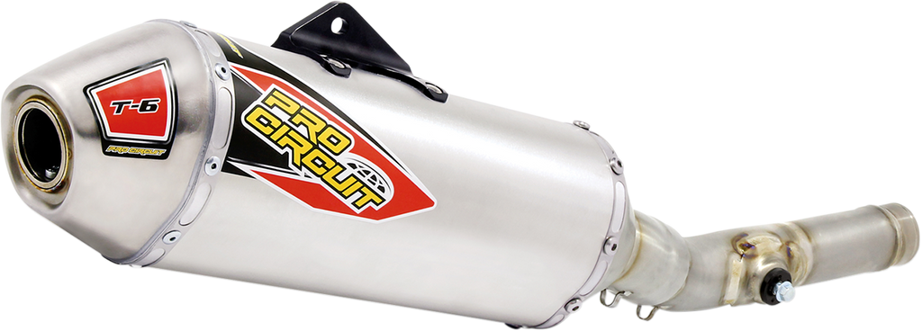 T-6 Stainless Slip-On Silencers are designed for a rider looking for an inexpensive, easy-to-install, durable performance silencer that can bolt onto their stock headpipe, Constructed of stainless steel throughout the mid-pipe and end-cap while the canister is constructed of aluminum for increased durability, Machined aluminum muffler bracket for increased strength and durability, Asymmetrical muffler configuration for increased packing volume, A removable spark arrestor will come equipped, TIG precision welding, Made in the U.S.A.