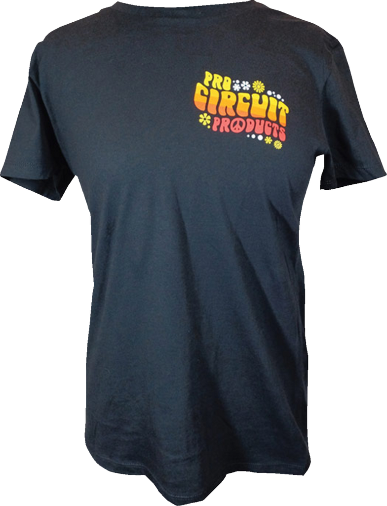 Celebrate retro style with the PRO CIRCUIT Women's Groovy T-Shirt, crafted from high-quality fabric for all-day comfort. This black T-shirt features a vibrant, screen-printed 70s throwback design made with durable inks that resist fading over time. Its classic fit and soft material make it a versatile choice for casual wear or summer outings. The bold, eye-catching graphic adds a touch of vintage flair to your wardrobe, perfect for fans of retro aesthetics or those seeking a unique, stylish look.