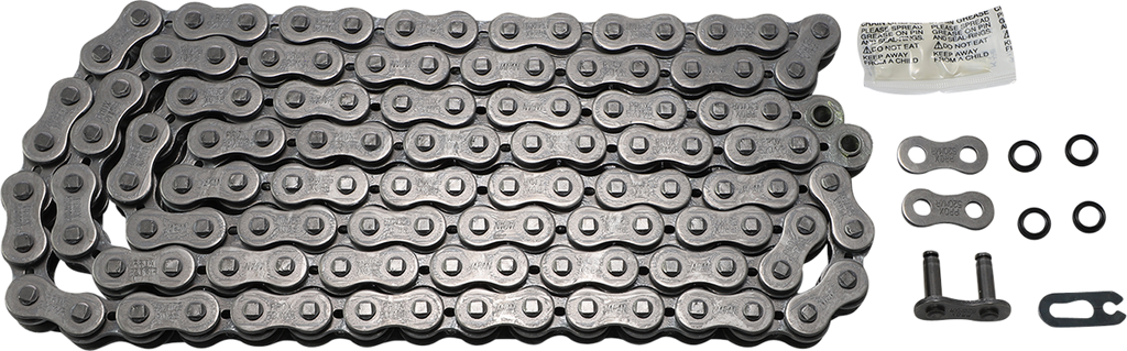 Assembled using Japanese steel, Surface treated and hardened pins, Shot-peened rollers for increased strength and stress resistance, Heat-treated plates, bushings, and rollers, Weight-optimized design, X-ring offers 150%+ chain life