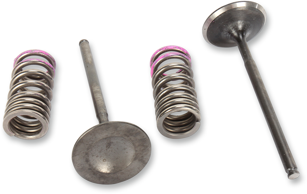 Replaces the OEM valves and valve springs, Steel, nitrided valves for increased durability and less wear under extreme conditions, Stronger valve springs deal with the extra weight of the steel valves, Springs are made from premium chrome vanadium steel for higher performance and durability at high rpm, Kit contains a set of steel intake or exhaust valves plus a set of specially designed valve springs; can be installed using the OEM retainers, bases and valve seals