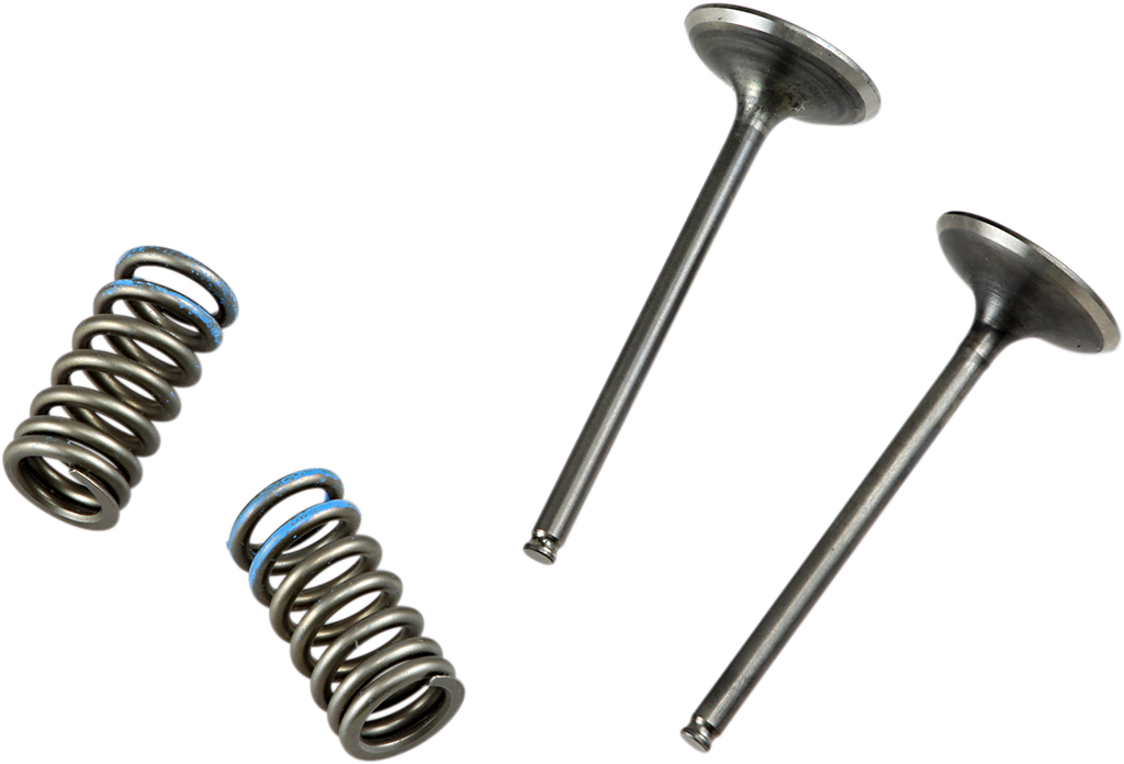 Replaces the OEM valves and valve springs, Steel, nitrided valves for increased durability and less wear under extreme conditions, Stronger valve springs deal with the extra weight of the steel valves, Springs are made from premium chrome vanadium steel for higher performance and durability at high rpm, Kit contains a set of steel intake or exhaust valves plus a set of specially designed valve springs; can be installed using the OEM retainers, bases and valve seals