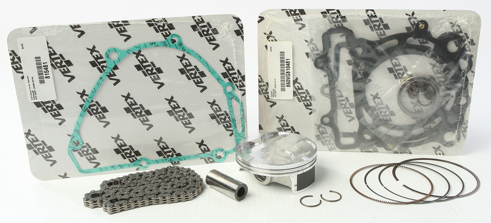 - Top end piston kit includes piston, rings, pins, circlips, top end gaskets, and wrist pin bearing or cam chain where applicable