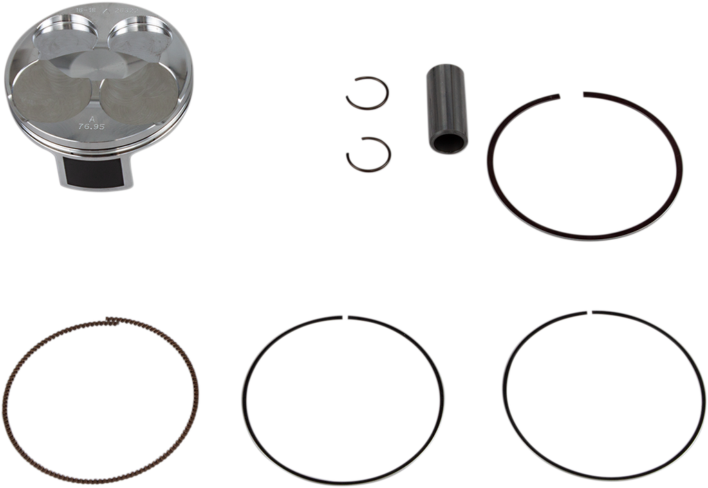 All pistons are heat-treated with a T-5 hardening and tempering cycle, All piston skirts are coated with a high-tech Molybdenum Disulphite coating for faster break-in time and increased piston life, Forged pistons are forged from 2618 aluminum for superior strength and durability, Forged High Compression pistons improve power and torque across entire rpm range, Forged Replica pistons are forged OE replacements, Replica pistons and all rings are OEM replacements, Kits include piston, rings, wrist pin and circlips