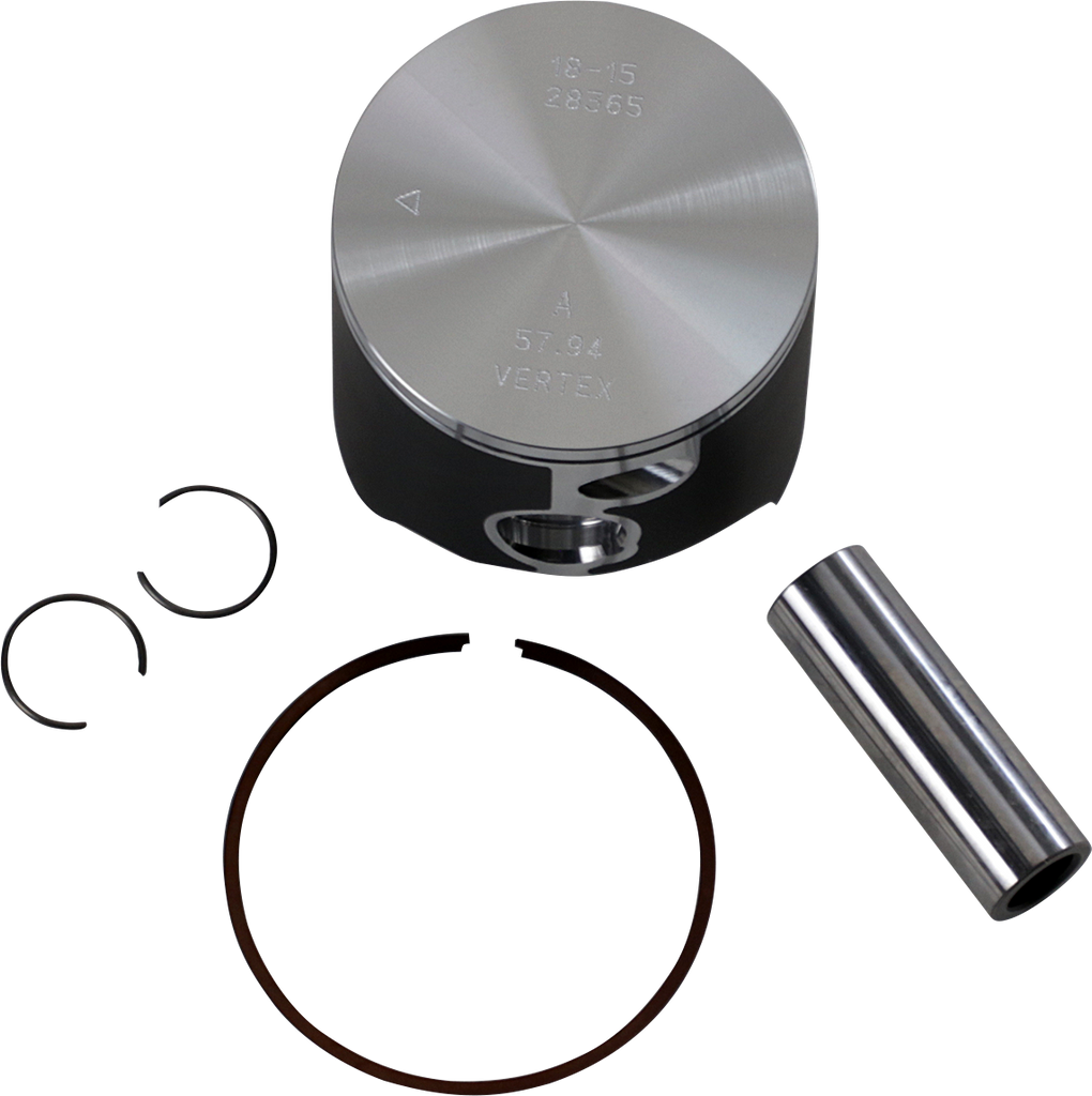 All pistons are heat treated with a T-5 hardening and tempering cycle, All piston skirts are coated with a high-tech Molybdenum Disulphite coating for faster break-in time and increased piston life, Cast piston kits are gravity cast aluminum alloy (not forged) with 18% silicone content, which produces an extremely light but very strong piston, Forged pistons are forged from 2618 aluminum for superior strength and durability, Forged High Compression pistons improve power and torque across entire rpm range, Big Bore pistons increase engine’s displacement, torque, and peak horsepower, Forged Replica pistons are forged OE replacements, Replica pistons and all rings are OEM replacements, Kit includes piston, rings, wrist pin and circlips, Replacement two-stroke piston rings sold individually; four-stroke piston rings sold as a set as needed